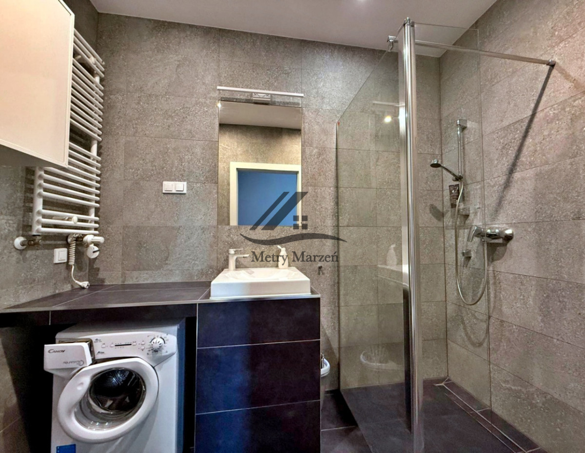 - łazienka z prysznicem i pralką.